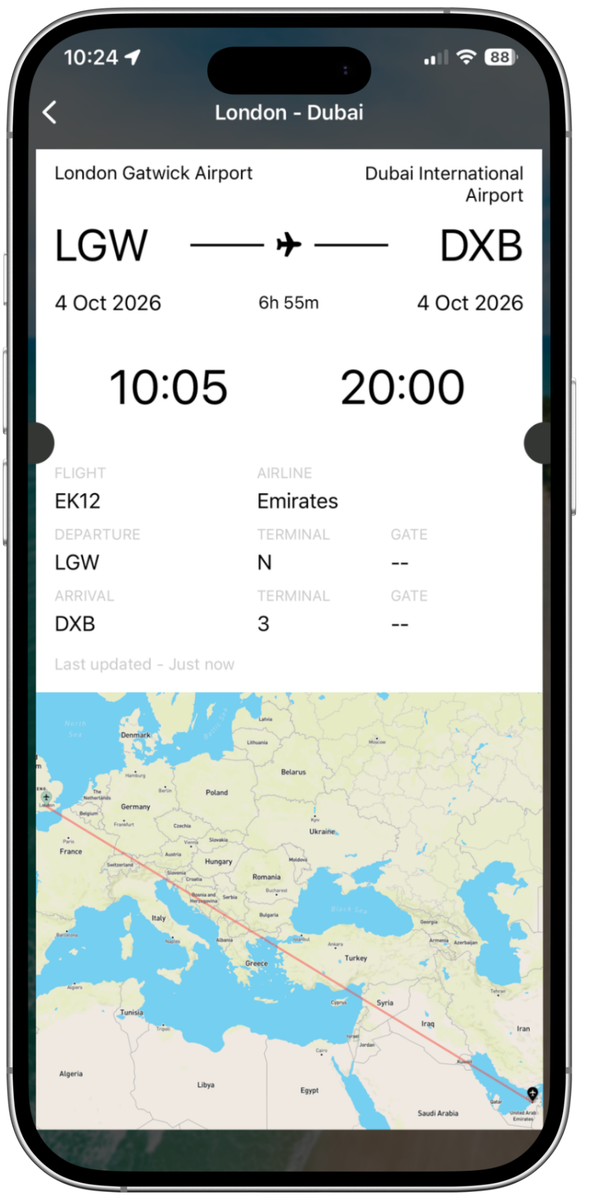 - Automatically updated to show time changes, gate numbers and baggage reclaim information
