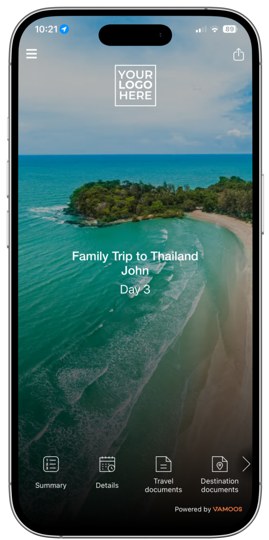 - Over 25 features including: a document folder, flight info and alerts, a diary for their stay, and a full day by day itinerary